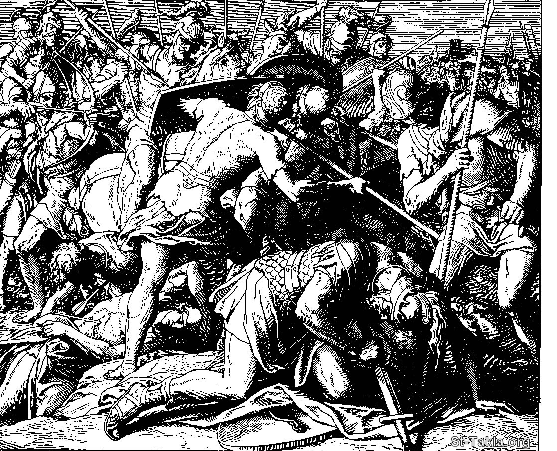 موت شاول (صموئيل الأول 31: 4) - من كتاب "كتاب الكتب بالصور"، جوليوس شنور فون كارولسفيلد، فيرلاج فون جورج ويجاند، ليبزيج، 1908 م.