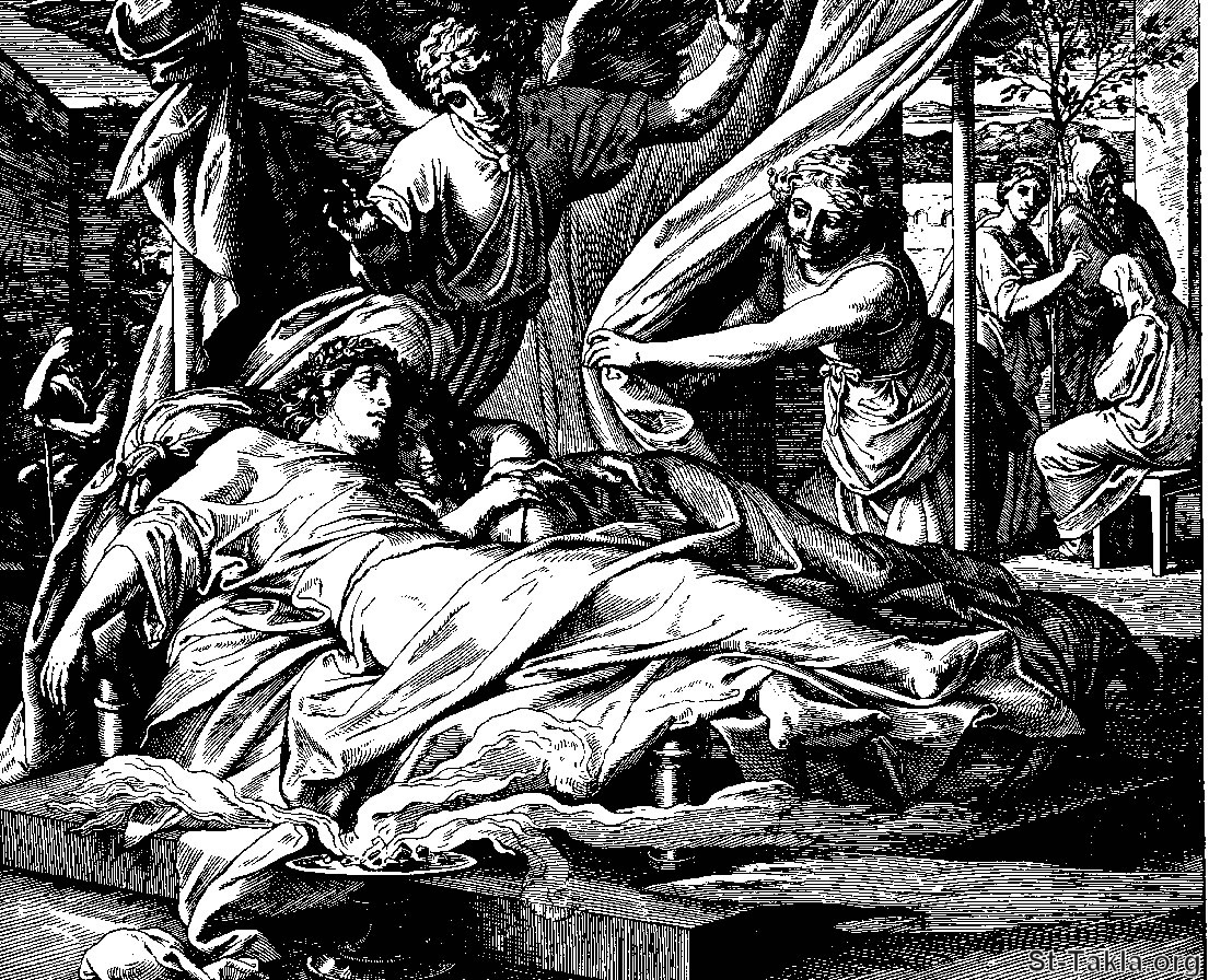 يقظة طوبيا وسارة (طوبيا 8) - من كتاب "كتاب الكتب بالصور"، جوليوس شنور فون كارولسفيلد، فيرلاج فون جورج ويجاند، ليبزيج، 1908 م.