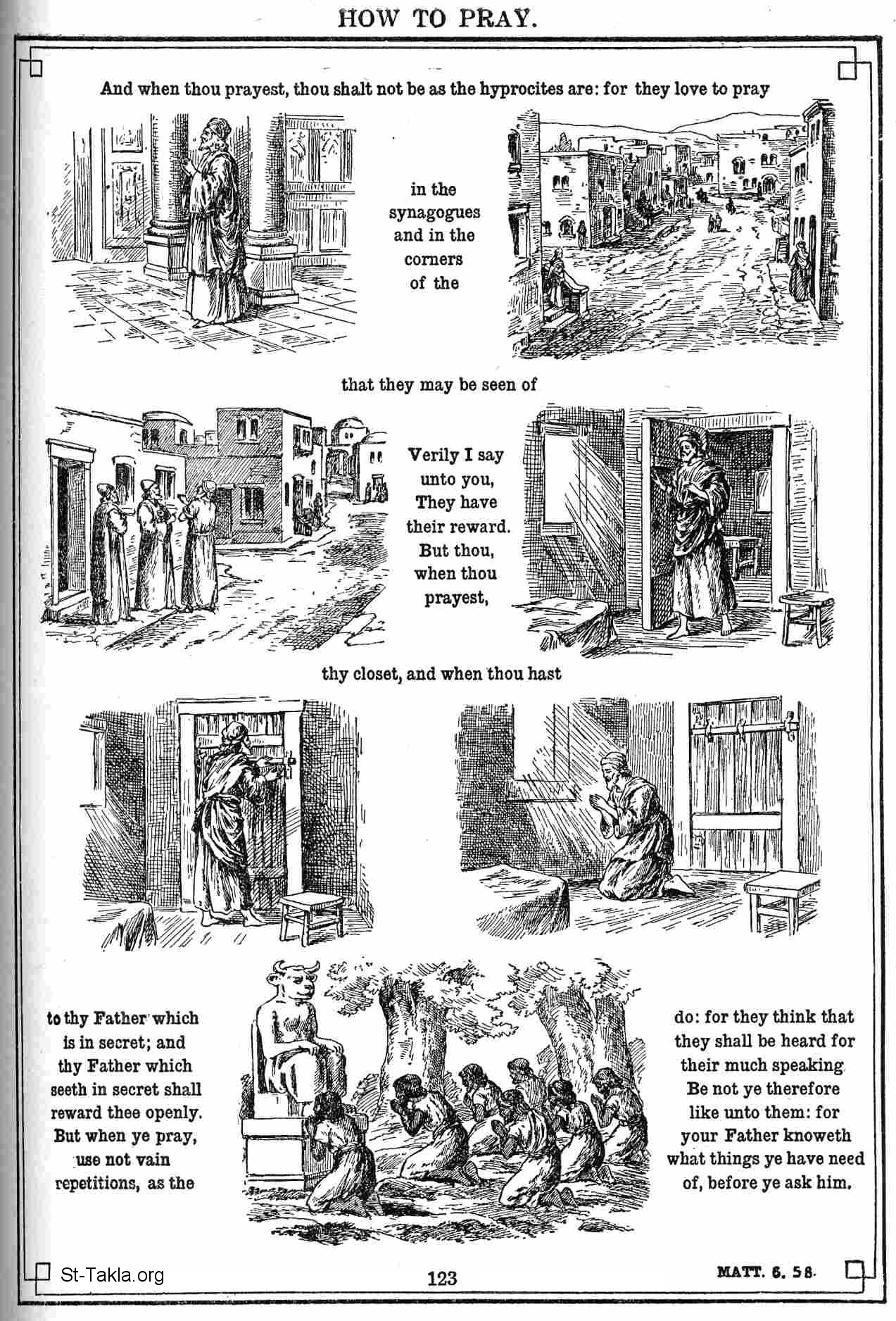 (Matt. 6: 5-8) - New Testament Illustrations - The Bible in Pictures (The Old Bible Symbols), by M. Bihn & J. Bealings, 1922.