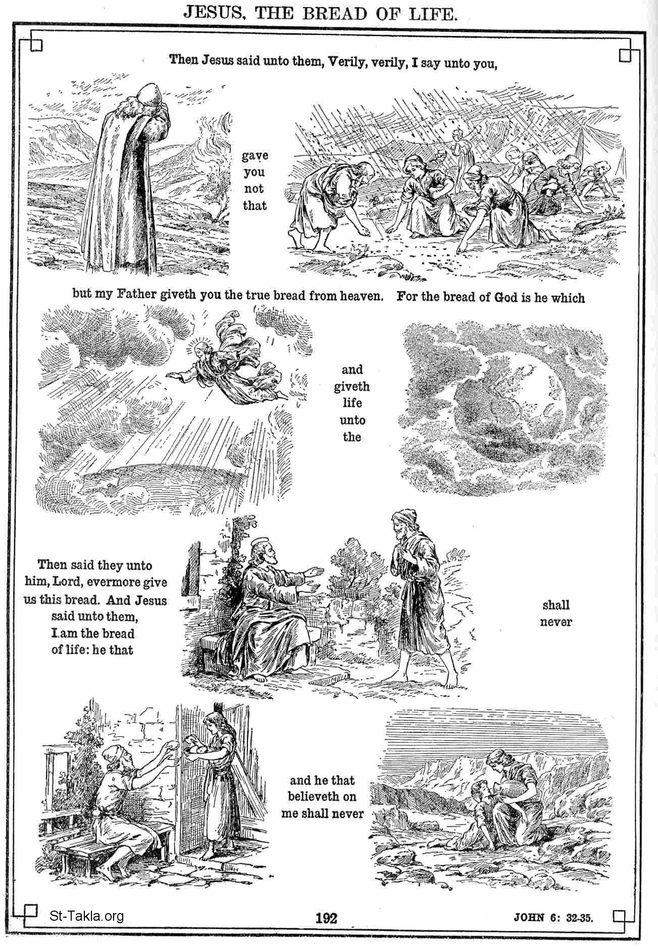 (John 6: 32-35) - New Testament Illustrations - The Bible in Pictures (The Old Bible Symbols), by M. Bihn & J. Bealings, 1922.
