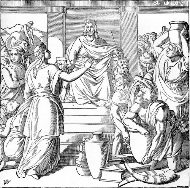https://st-takla.org/Gallery/Bible/Illustrations/Treasures-of-the-Bible/04-Chapters-15-18---Covering-the-United-Kingdom/28-The-Queen-of-Sheba-Comes-to-See-Solomon-s-Wisdom.html