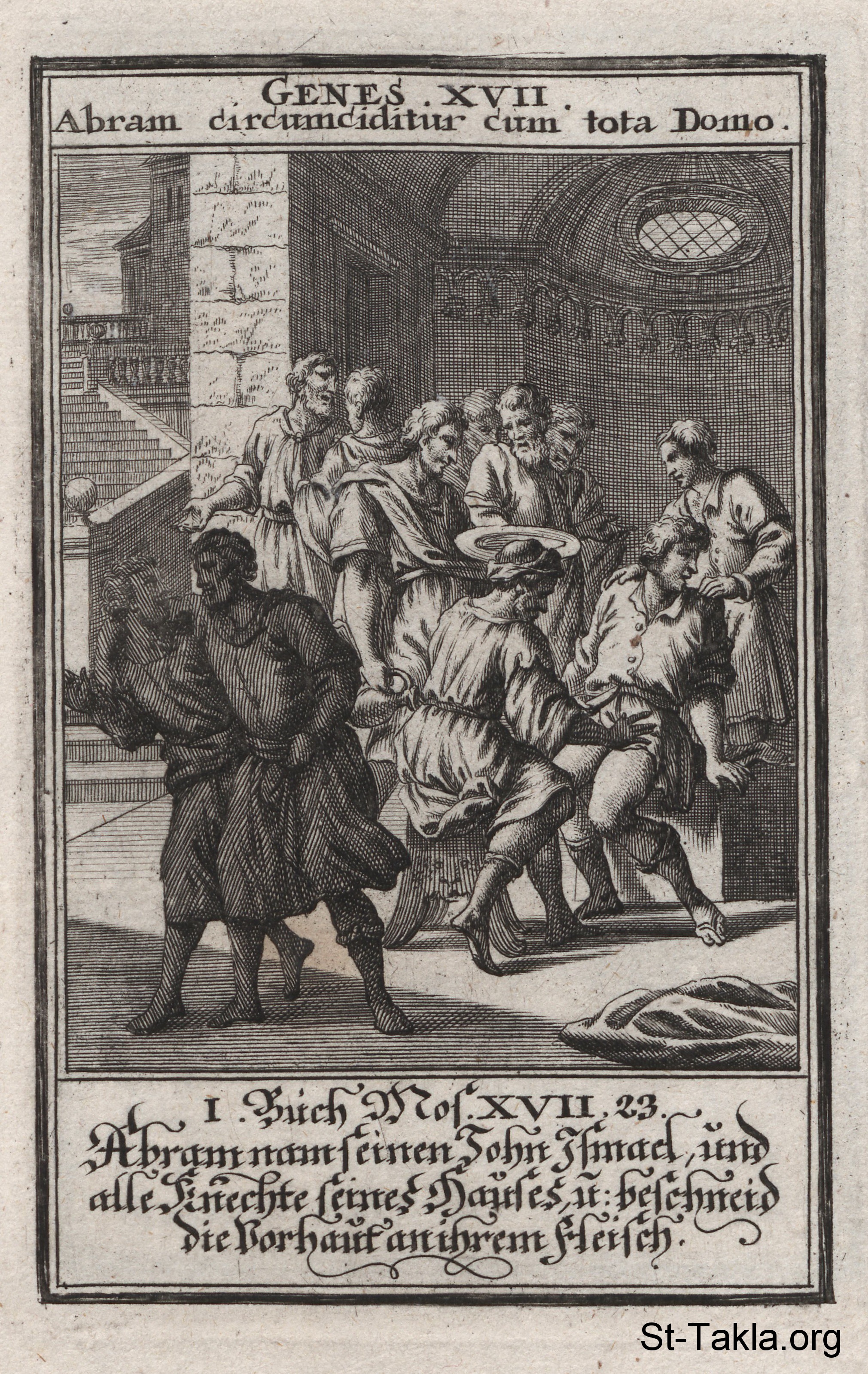 عهد الختان: إبراهيم يختن إسماعيل إتمامًا للعهد: (التكوين 17) - من كتاب: الكتاب المقدس المصور، يوهان كريستوف فيجيل، 1965 م.