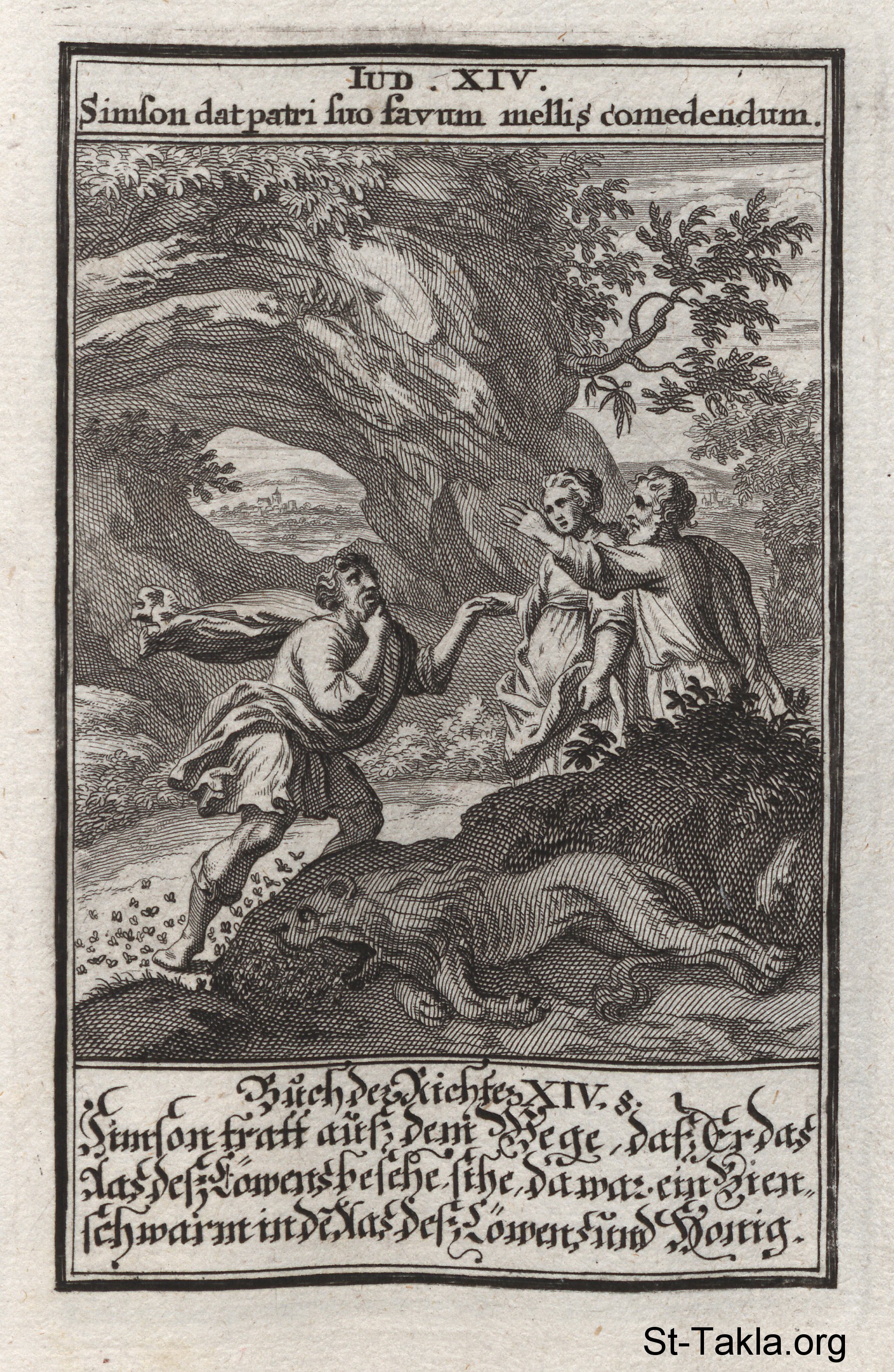 : (القضاة 14) - من كتاب: الكتاب المقدس المصور، يوهان كريستوف فيجيل، 1965 م.