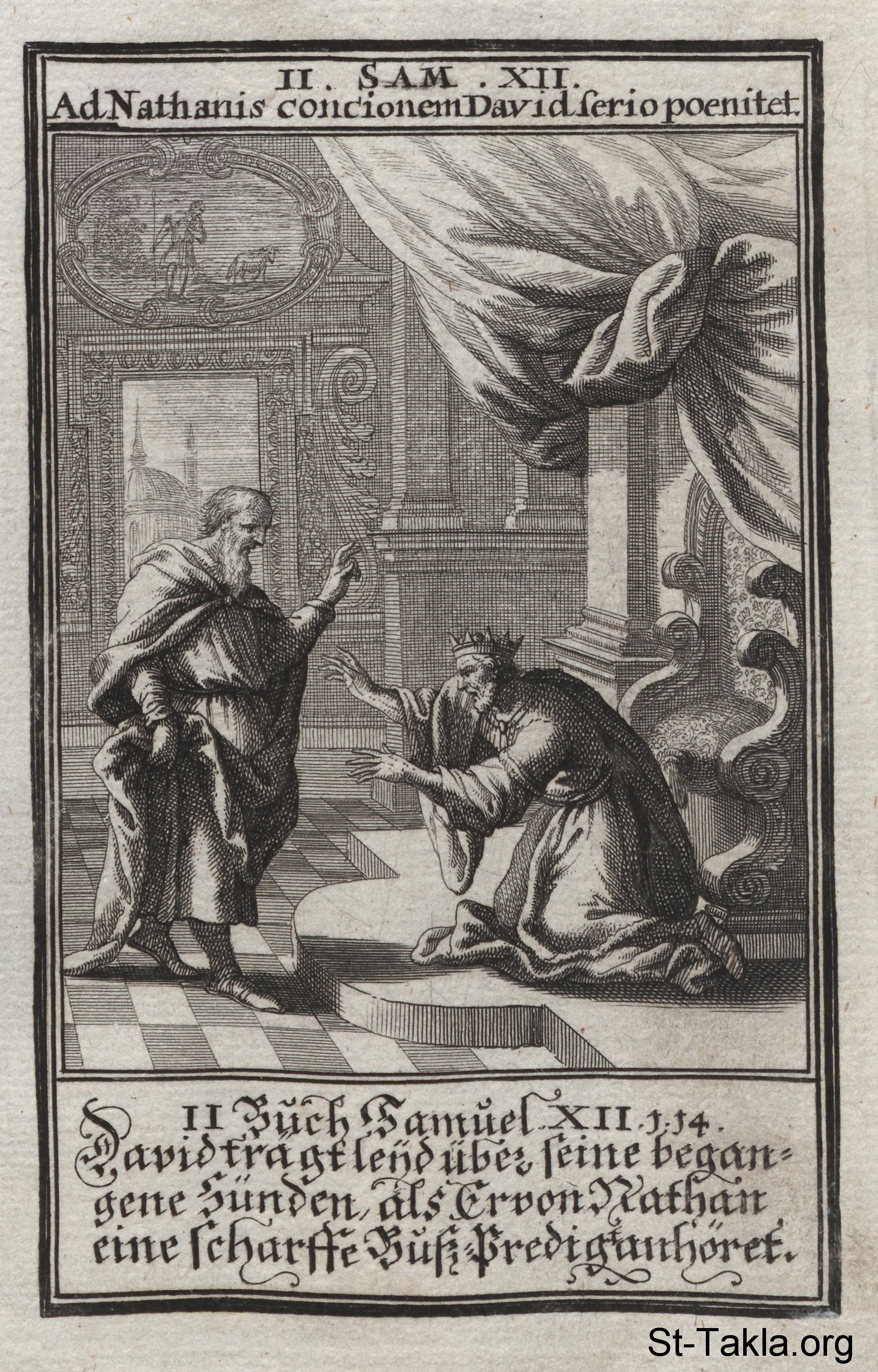 : (صموئيل الثاني 12) - من كتاب: الكتاب المقدس المصور، يوهان كريستوف فيجيل، 1965 م.
