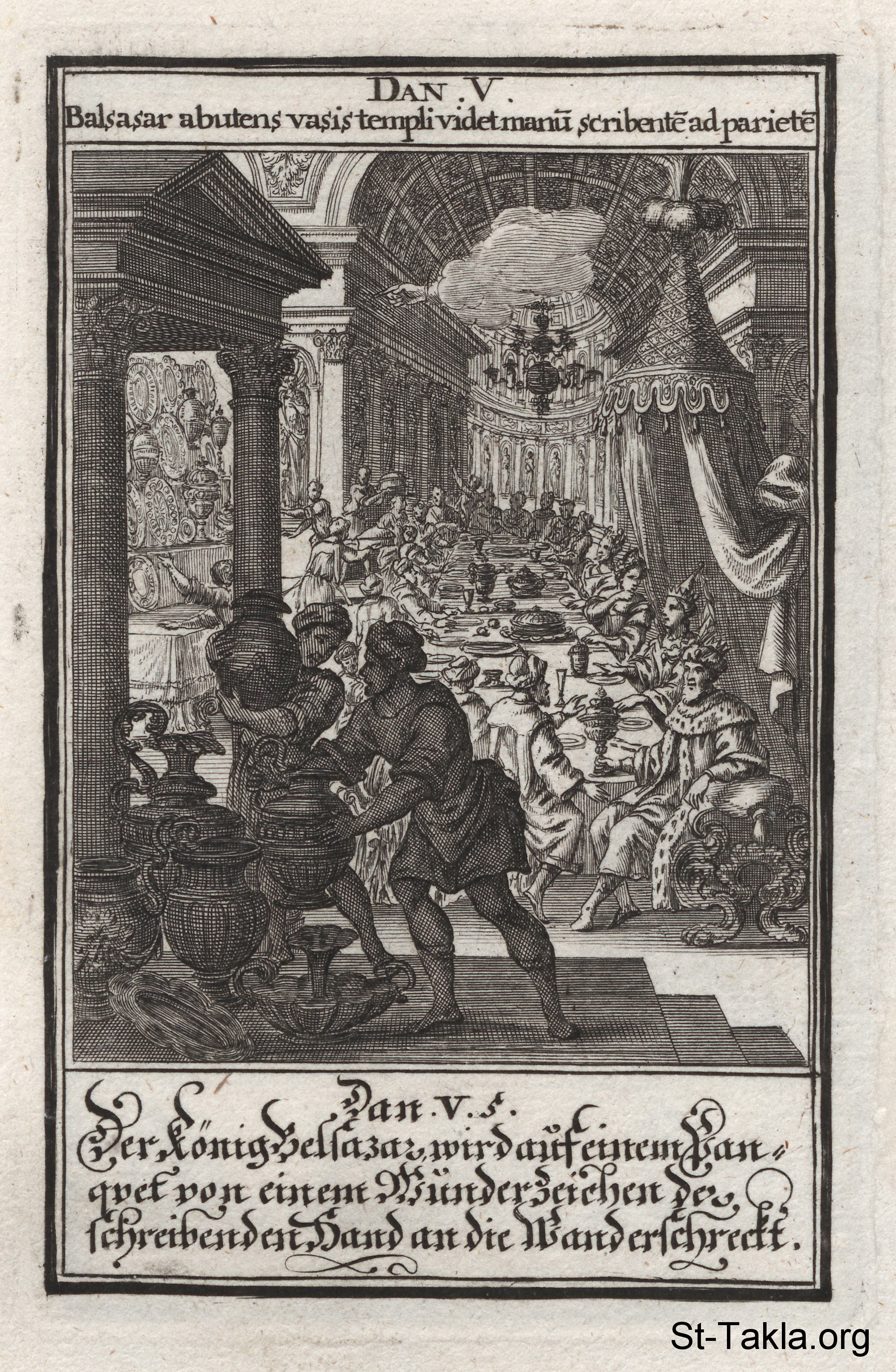: (دانيال 5) - من كتاب: الكتاب المقدس المصور، يوهان كريستوف فيجيل، 1965 م.