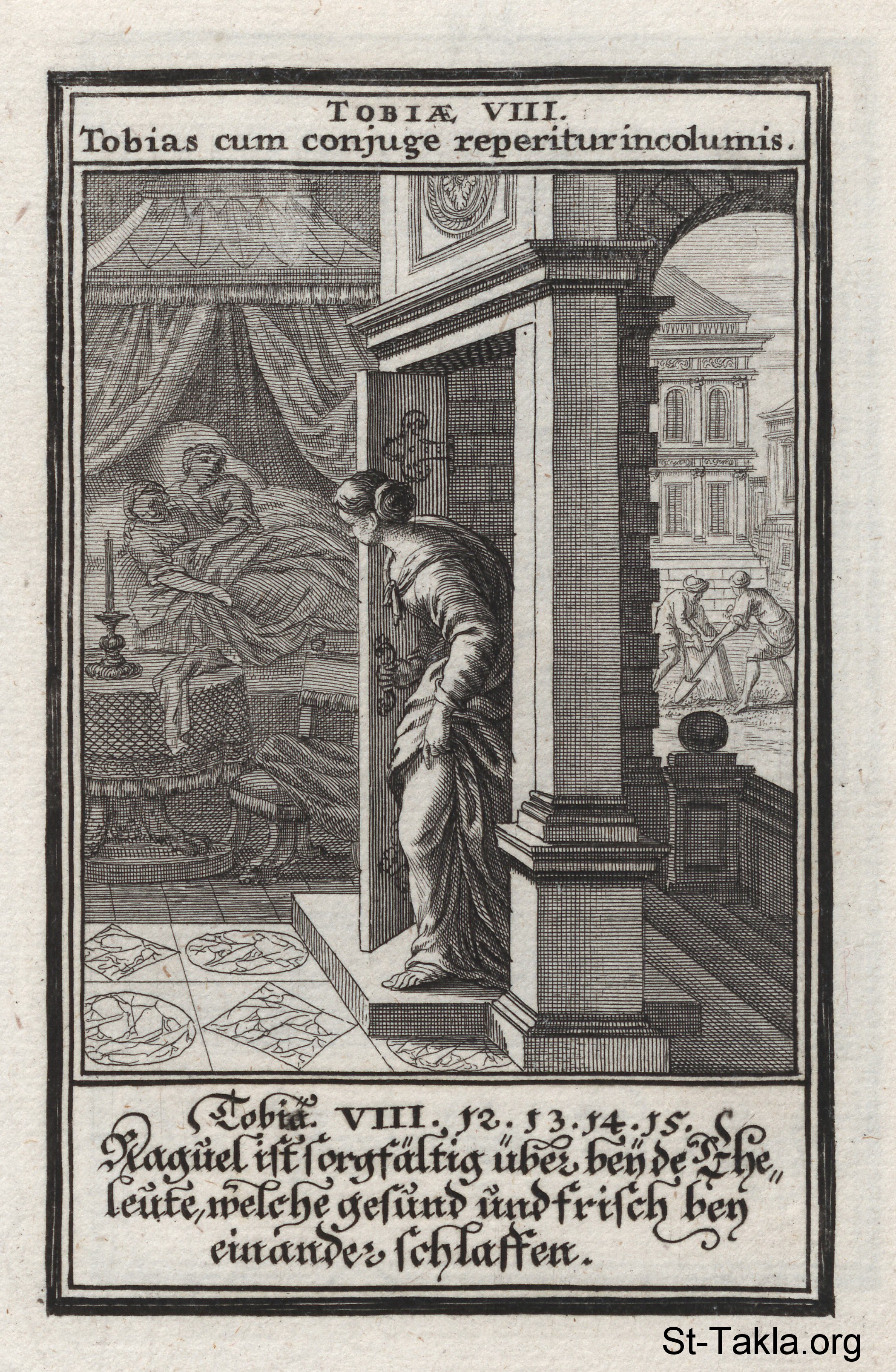 : (طوبيا 8) - من كتاب: الكتاب المقدس المصور، يوهان كريستوف فيجيل، 1965 م.