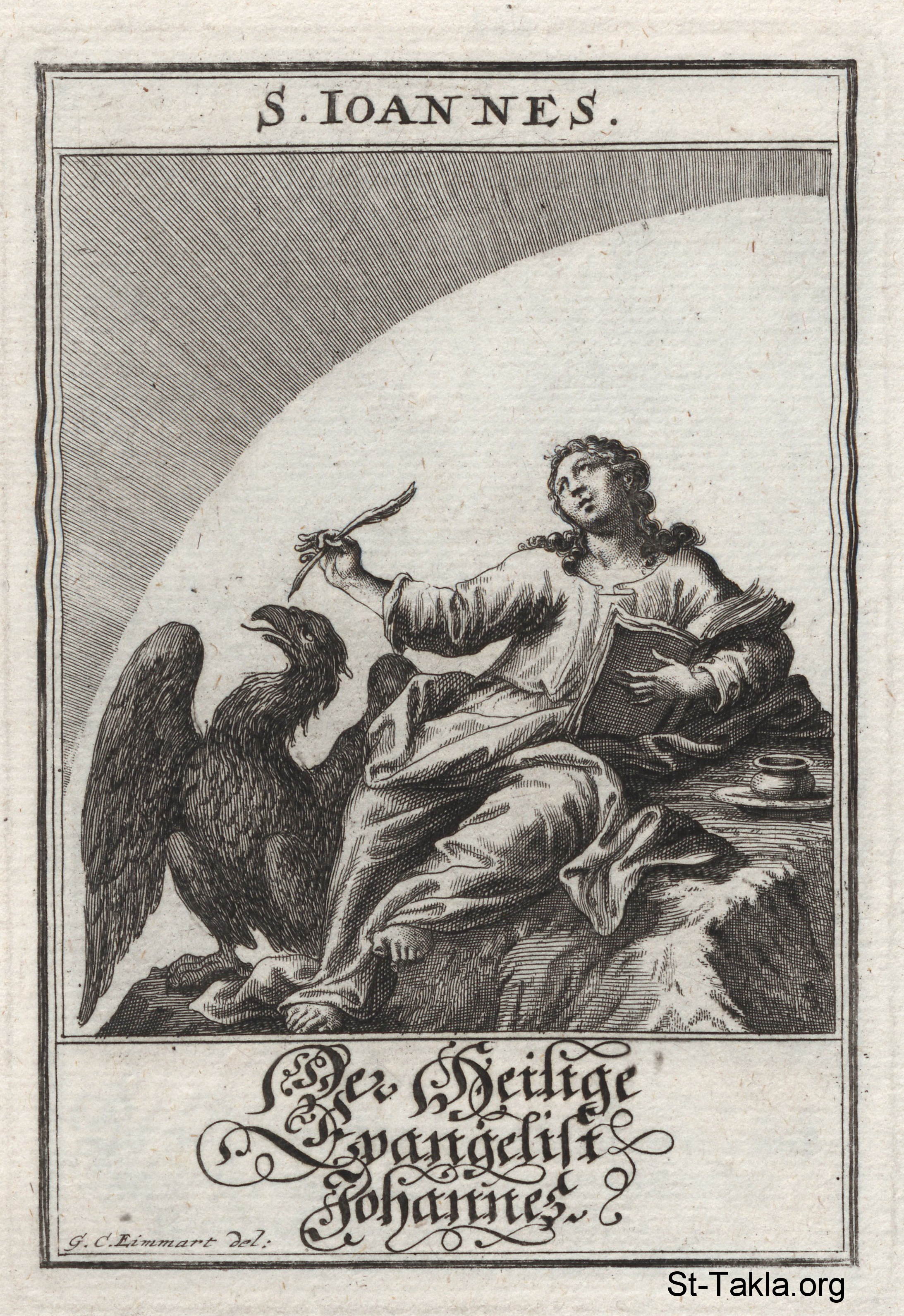 القديس يوحنا الإنجيلي ورمزه: النسر.: (يوحنا ) - من كتاب: تاريخ السيد المسيح، يوهان كريستوف فيجيل، 1695 م.