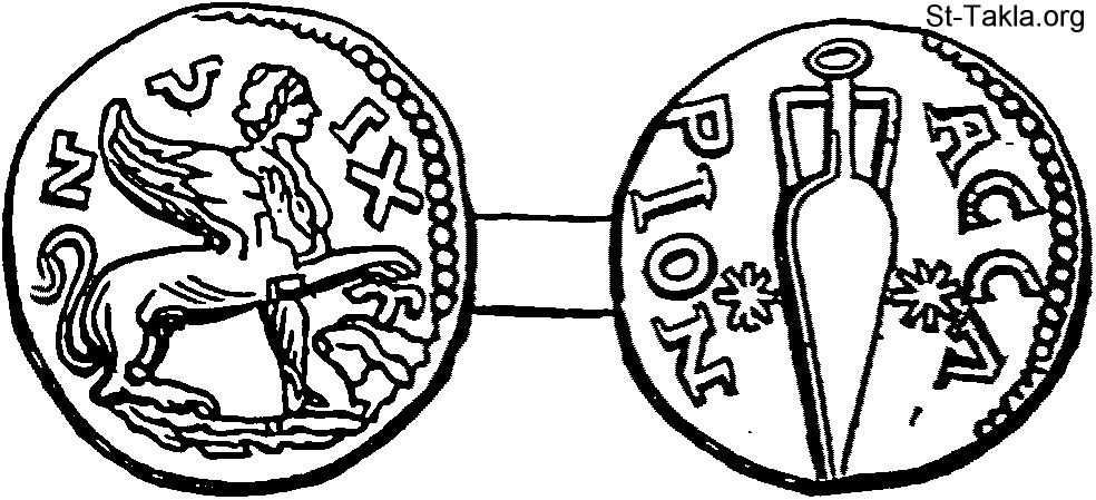 عملة أشورية - من كتاب موسوعة الكتاب المقدس المبسطة (الأجزاء 1-4)، للأرشمندريت نيسيفوروس، 1891، 1892 م.