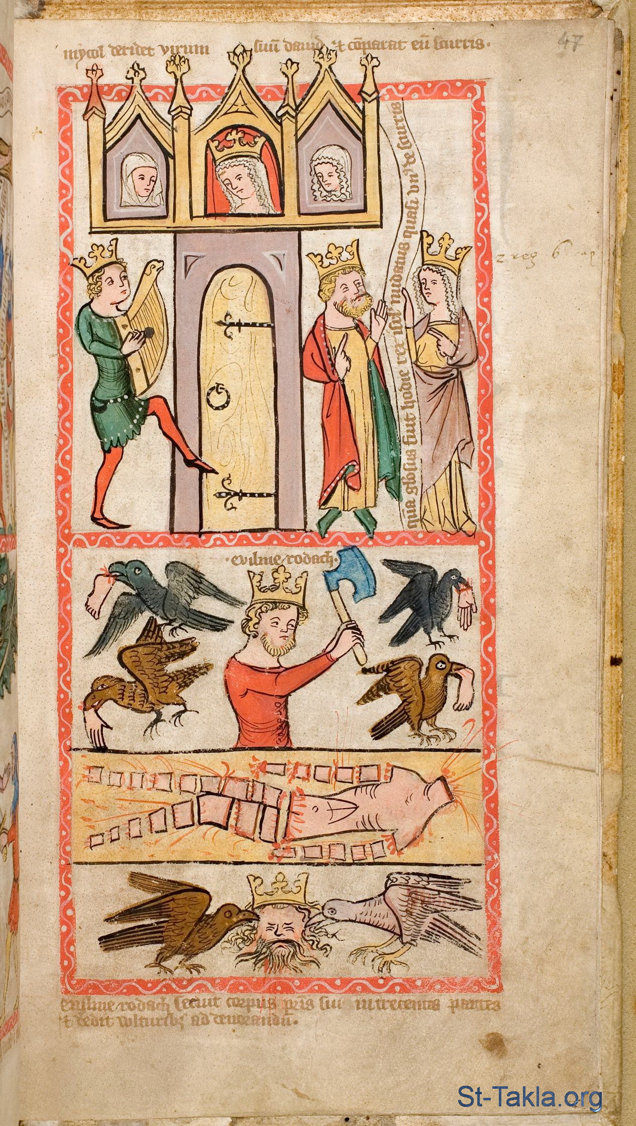 - من مخطوط مرآة خلاص البشرية (صورة 138)، صدر في كولونيا أو وستفاليا بألمانيا، 1360 م. تقريبًا - جامعة دارمشتات التقنية، ألمانيا.