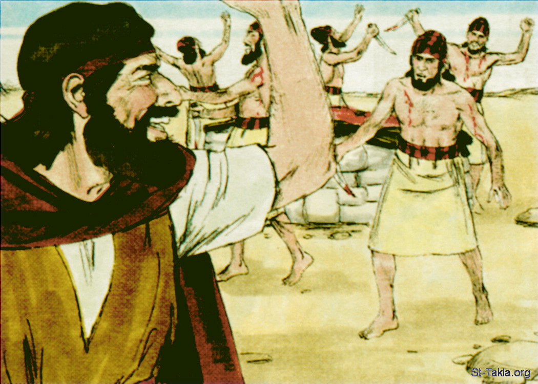 "قال إيليا لجميع الشعب: «تقدموا إلي»" (الملوك الأول 18: 30) - صور سفر الملوك الأول، رسم جيمز بادجيت (1931-2009)، إصدار شركة سويت ميديا.