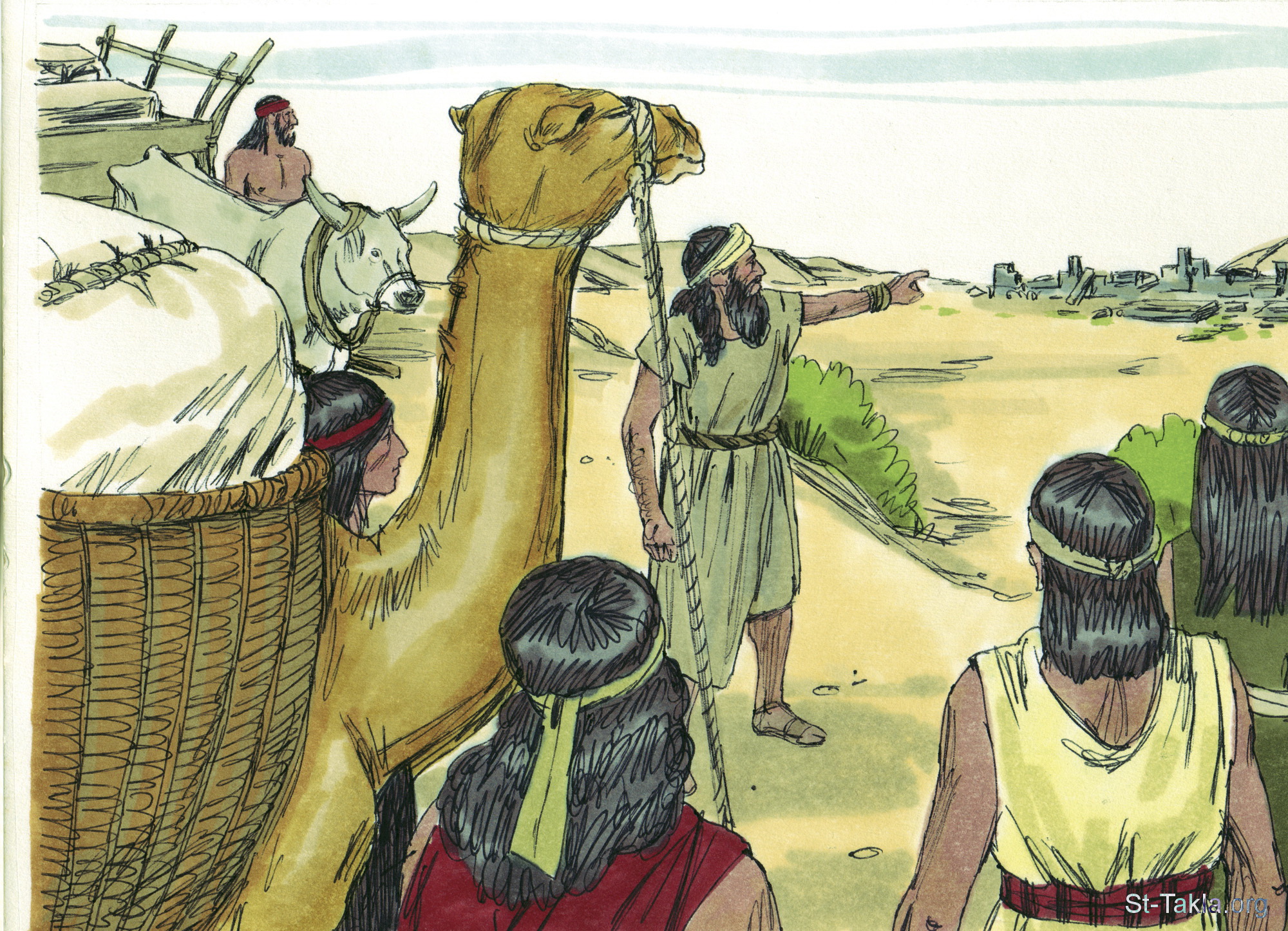 استقر بعض الأشوريون في السامرة وتزاوجوا مع اليهود الذين لم يتم ترحيلهم للسبي، وأصبحوا يُعرفون باسم "السامريين" - مجموعة "سبي إسرائيل إلى أشور" (ملوك الثاني 15: 17 - 17: 41) - صورة (14) - صور سفر الملوك الثاني، رسم جيمز بادجيت (1931-2009)، إصدار شركة سويت ميديا.