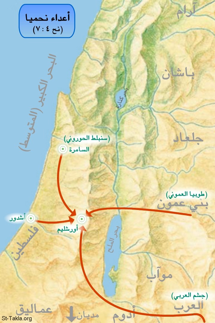 خريطة: أعداء نحميا (بالأسهم).