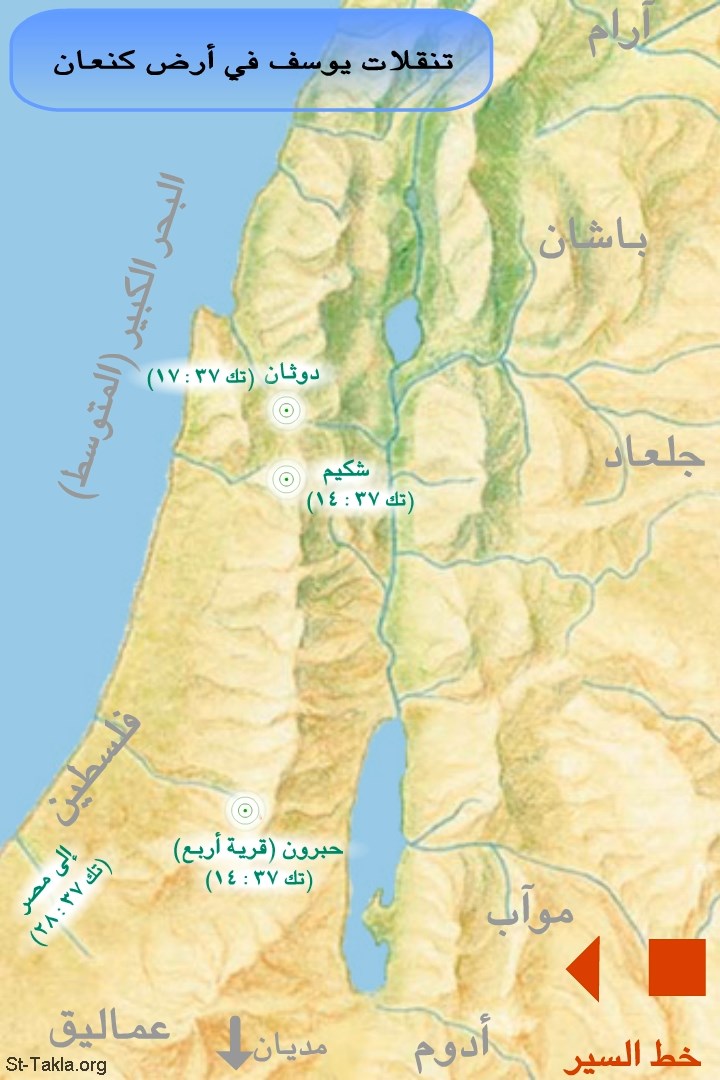 خريطة: تنقلات يوسف في كنعان.