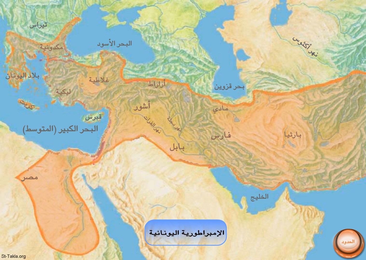 خريطة: حدود الإمبراطورية اليونانية (مع التظليل).