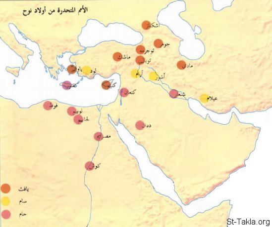 خريطة: الأمم المنحدرة من أولاد نوح.