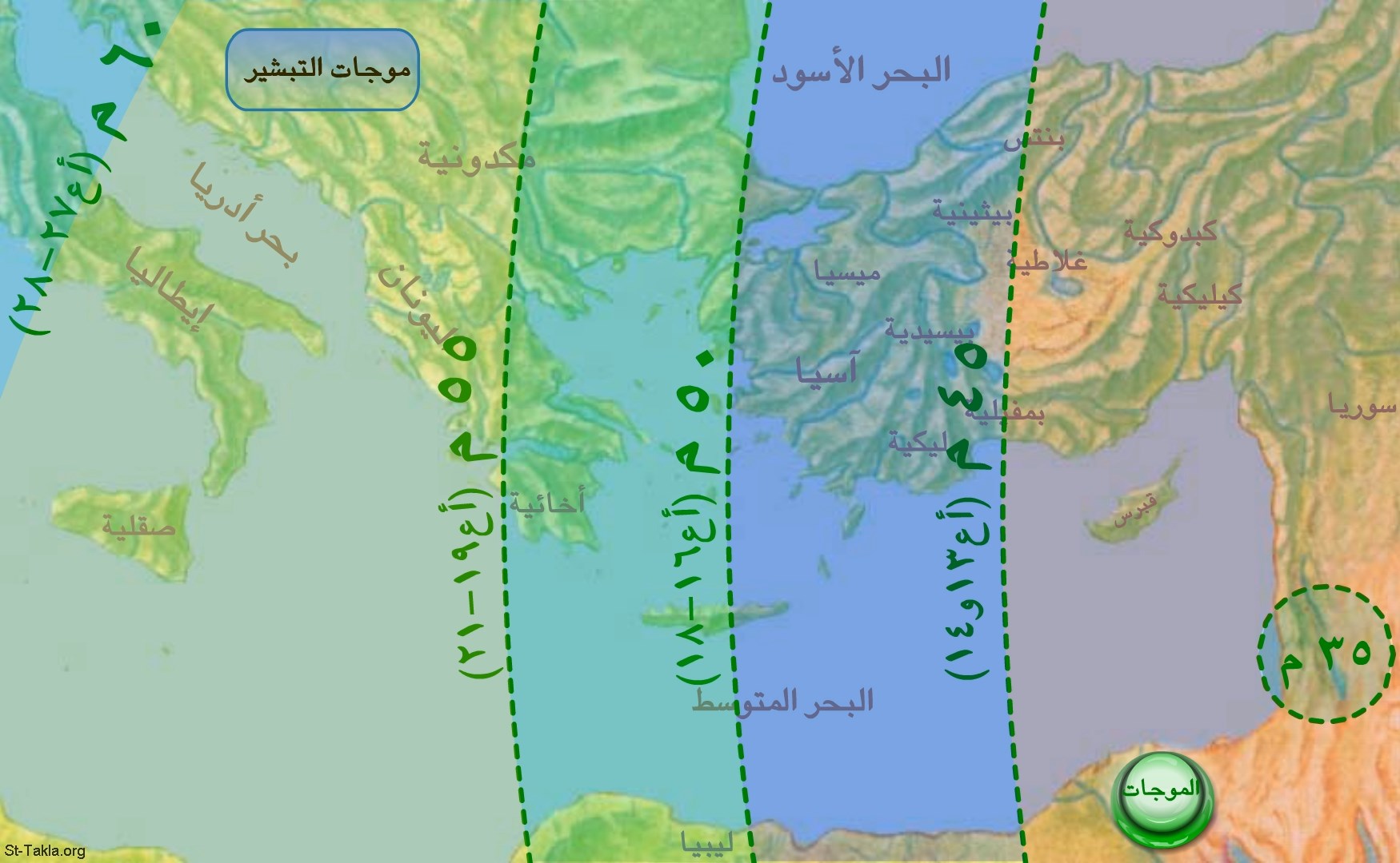 خريطة: موجات التبشير في بداية المسيحية.