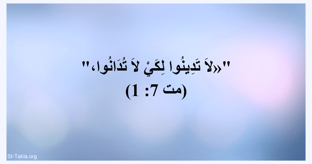 آية من الكتاب المقدس: "لا تدينوا لكي لا تدانوا" (متى 7: 1) - تصميم مايكل غالي لـ: موقع الأنبا تكلا هيمانوت.