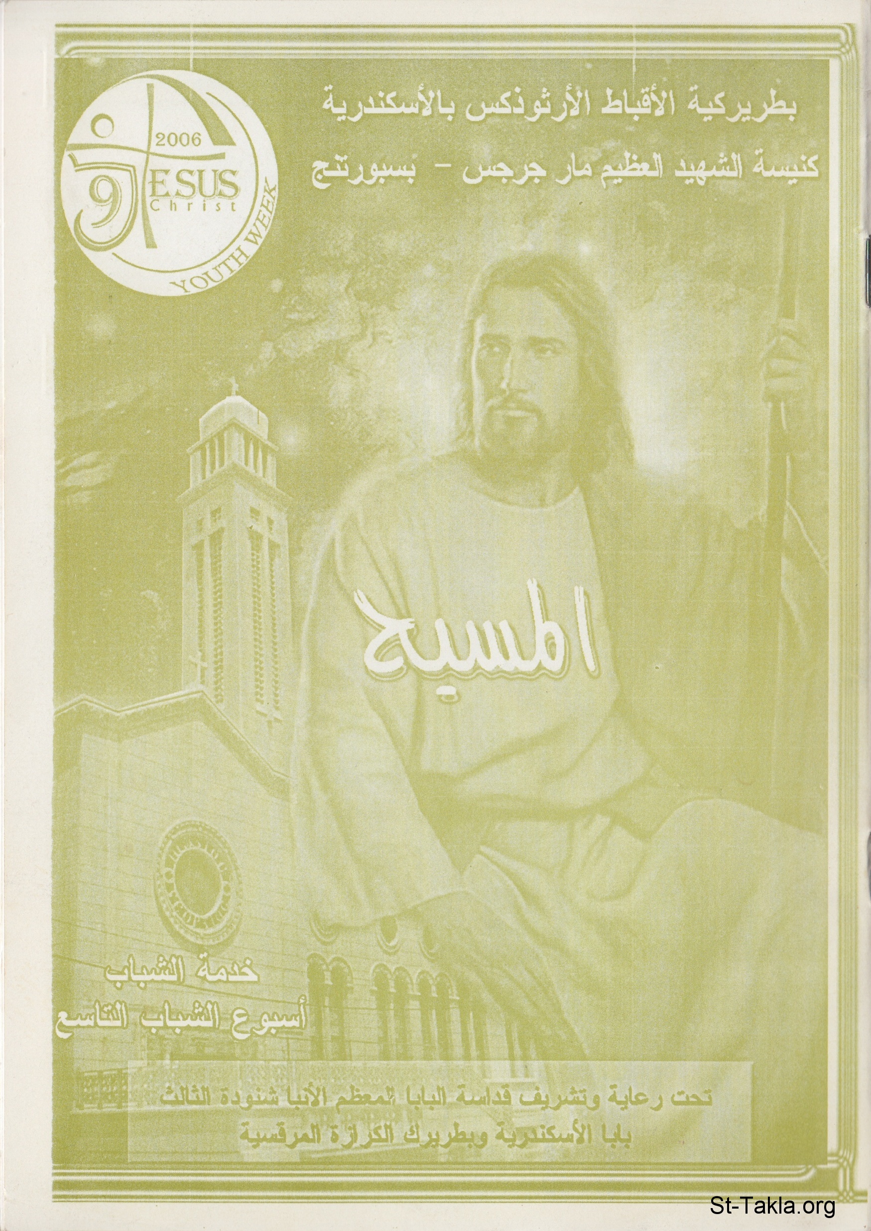 غلاف كتاب الترانيم: المسيح، خدمة الشباب، أسبوع الشباب السابع، كنيسة الشهيد العظيم مارجرجس بسبورتنج، الإسكندرية، مصر.