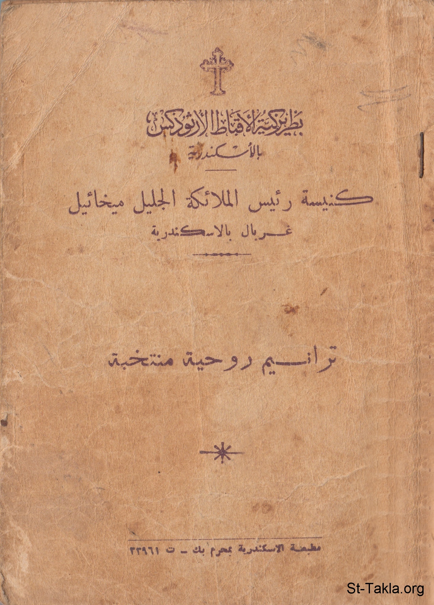 غلاف كتاب: ترانيم روحية منتخبة، كنيسة رئيس الملائكة الجليل ميخائيل، غربال، الإسكندرية، مصر.