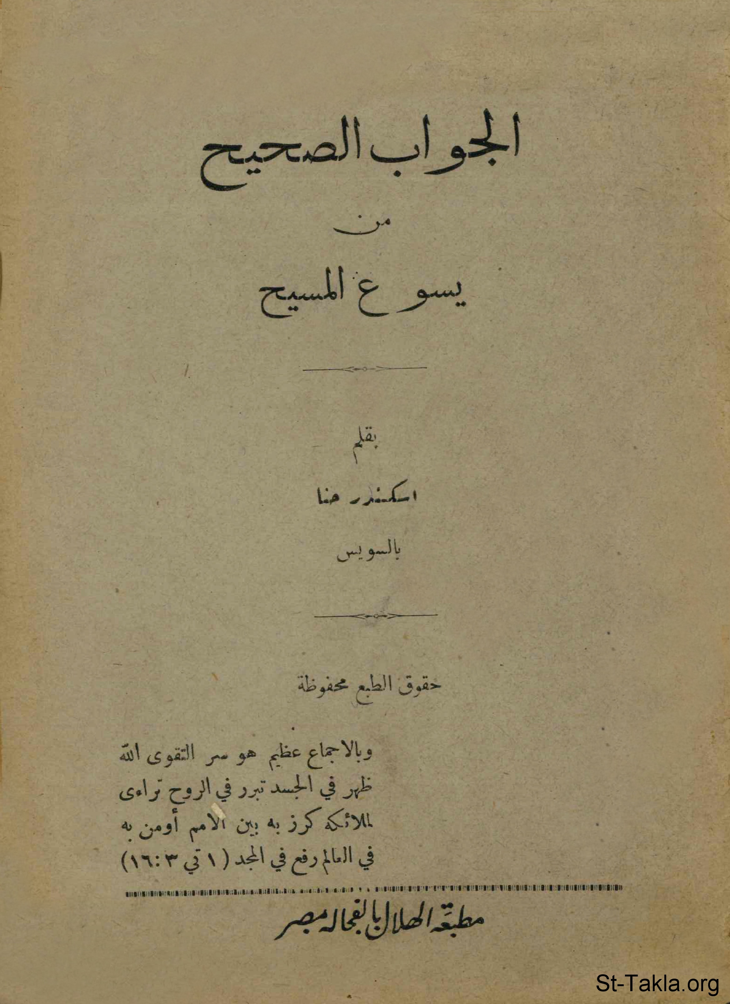 غلاف كتاب الجواب الصحيح من يسوع المسيح - إسكندر حنا.