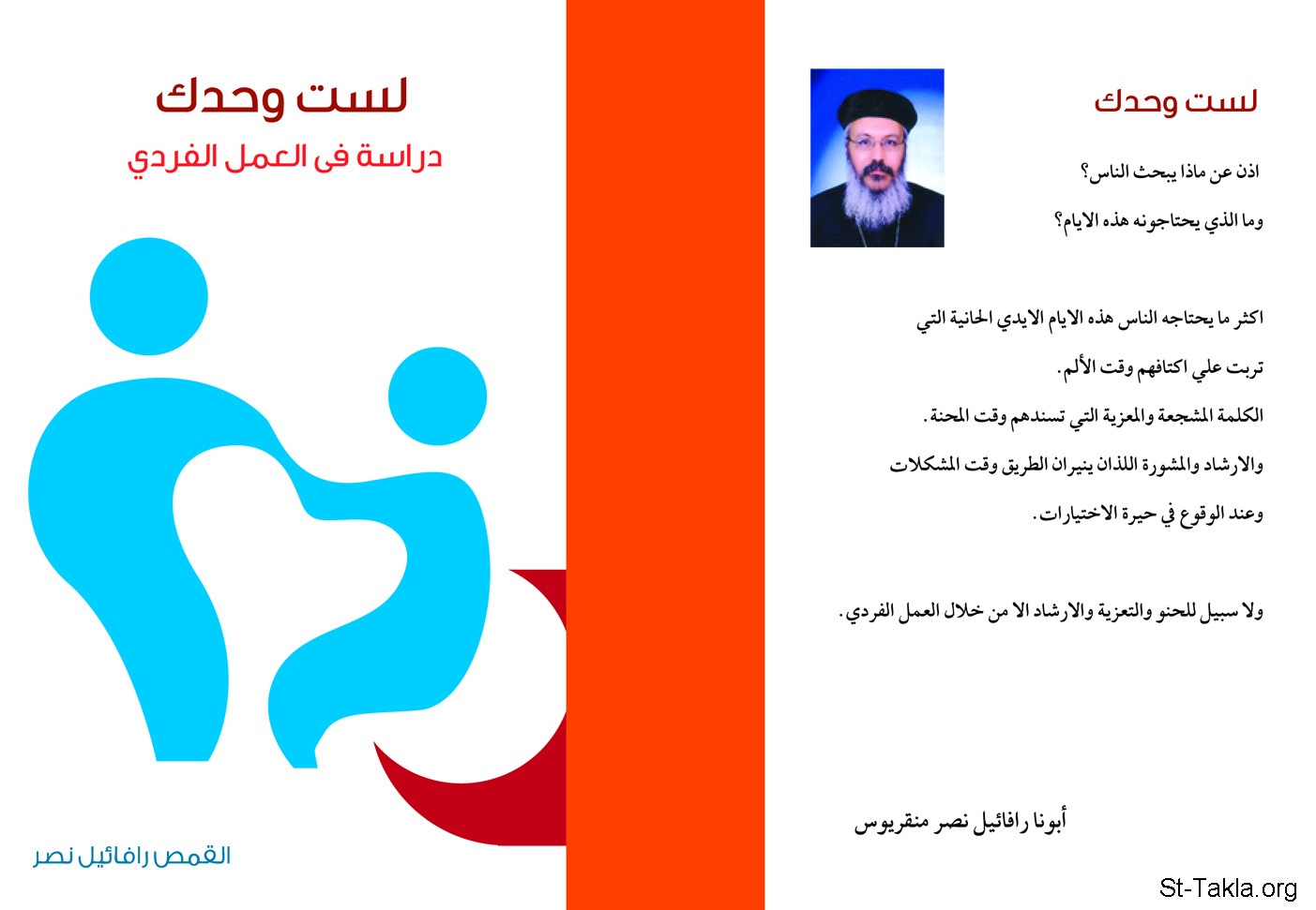 غلاف كتاب لست وحدك: دراسة في العمل الفردي (مع الغلاف الخلفي) - القمص رافائيل نصر منقريوس.