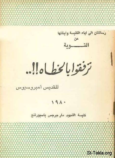 غلاف كتاب ترفقوا بالخطاة..!! للقديس أمبروسيوس (رسالتان إلى آباء الكنيسة وأبنائها عن التوبة)، 1980- القمص تادرس يعقوب ملطي.