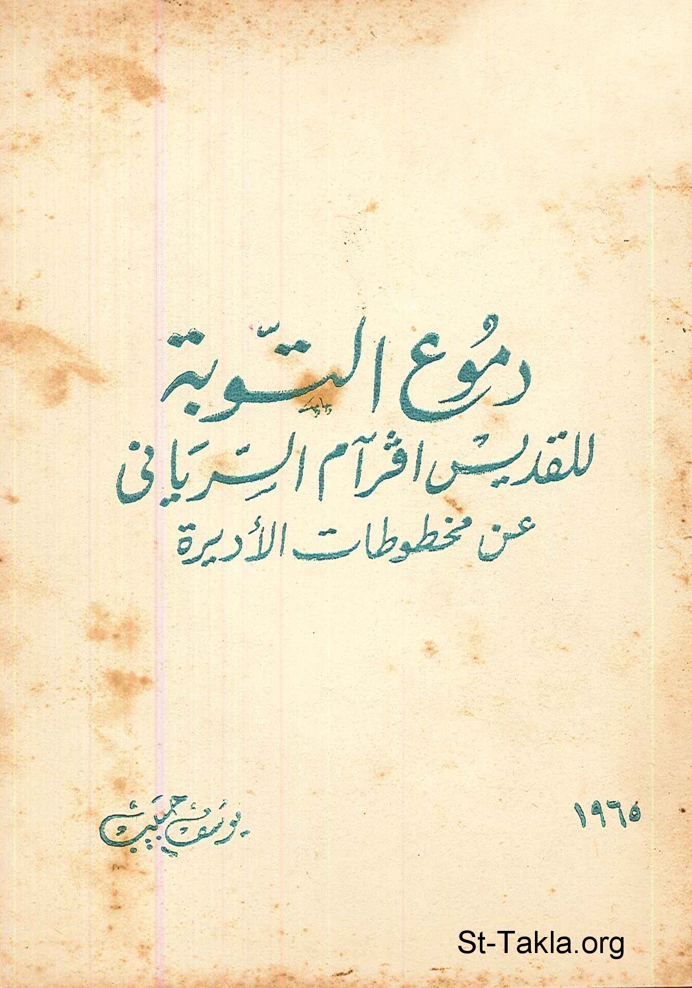 غلاف كتاب دموع التوبة للقديس مار أفرام السرياني (عن مخطوطات الأديرة) (سلسلة الدراسات القبطية) - يوسف حبيب.
