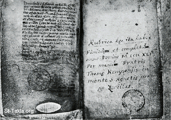 صورة من مخطوط الاقتداء بالمسيح، للراهب الكاثوليكي توما الكمبيسي - توما كمبيسي، آ كيمبي، فون كيمبين - مكتبة كونينكليجيك، براسل