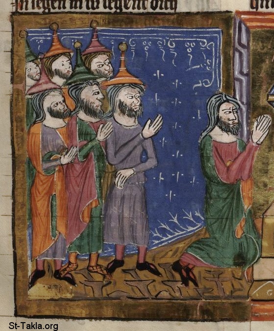 أبرام (إبراهيم) مع أسرته سيذهب إلى كنعان (التكوين 12) - من مخطوط كتاب تاريخ العالم (ويلتكرونيك)، رودلف فون إمس، في الفترة ما بين 1350-1375 م.