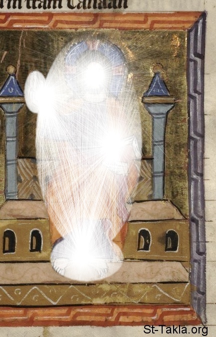الله جالس على العرش - من مخطوط كتاب تاريخ العالم (ويلتكرونيك)، رودلف فون إمس، في الفترة ما بين 1350-1375 م.