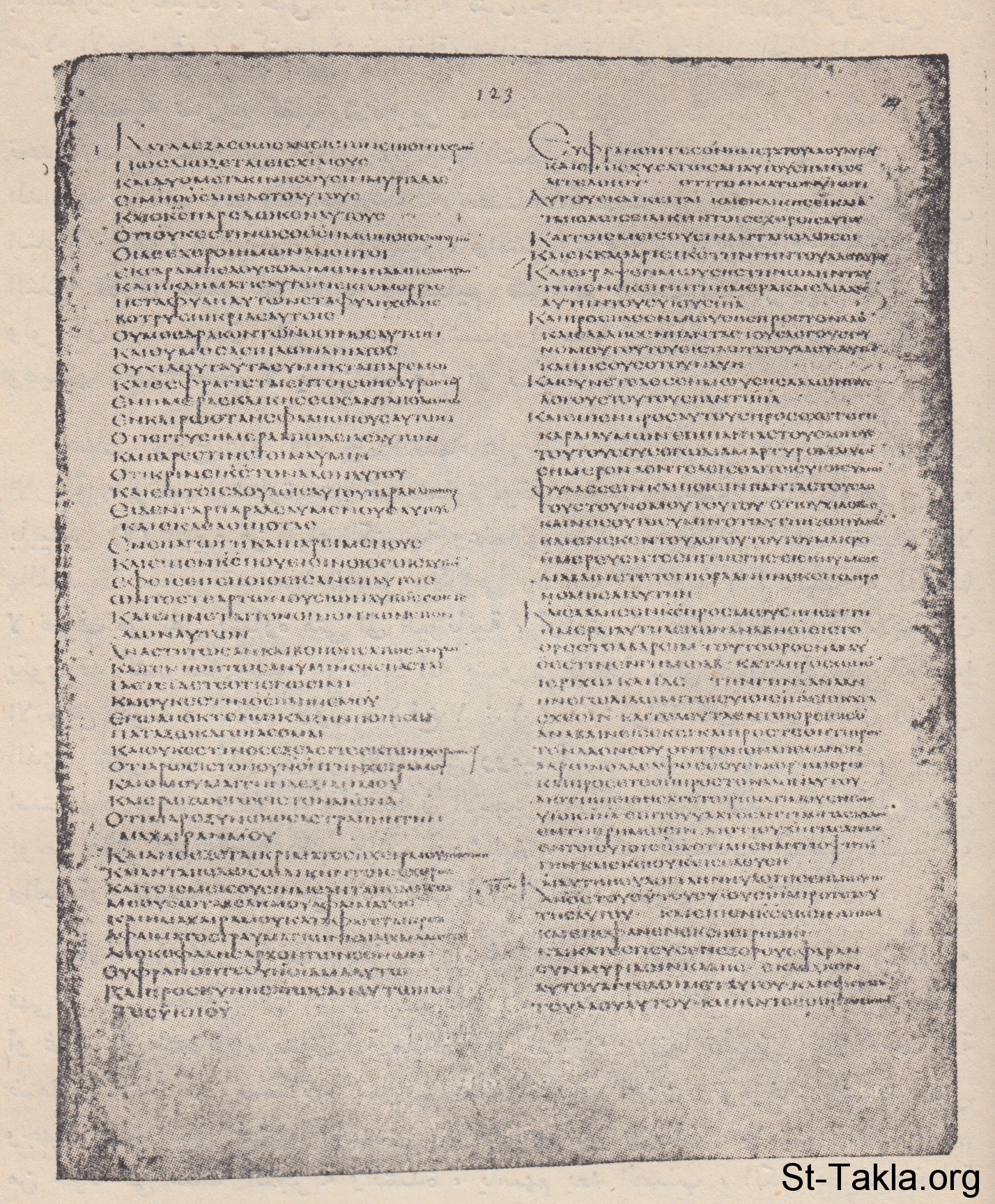 صفحة من الكتاب المقدس: النسخة الإسكندرانية (عن الإنجيل المحفوظ بالمتحف البريطاني) - من كتاب الكنيسة المسيحية في عصر الرسل، الأنبا يوأنس أسقف الغربية، مصر.