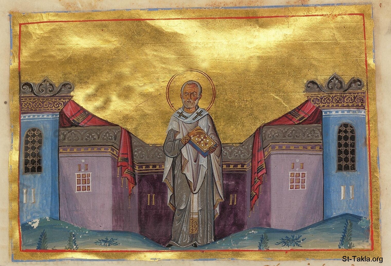 القديس نيقولاوس أسقف ميرا (270-343) - من مخطوط كتاب خدمات الإمبراطور باسيليوس الثاني، القرن العاشر، مكتبة الفاتيكان.