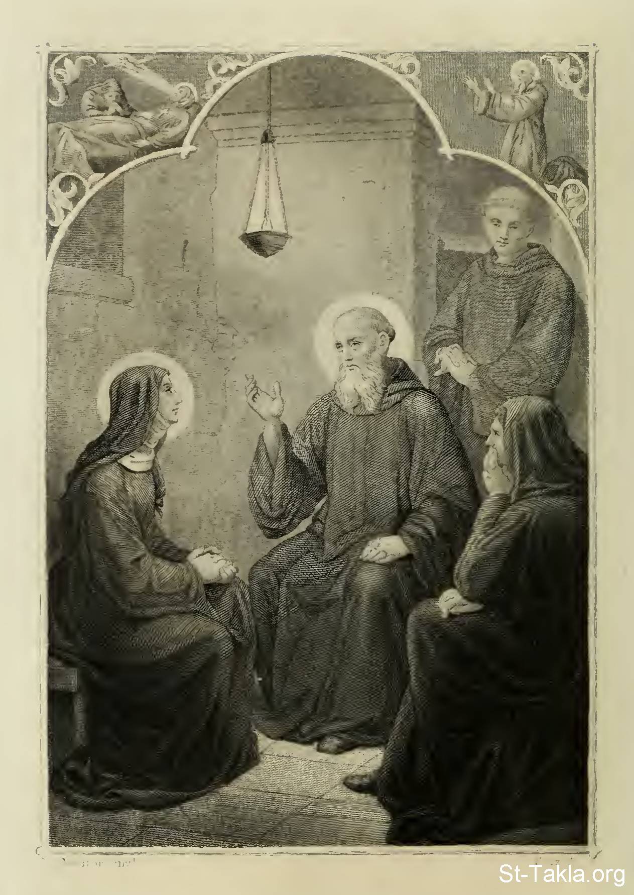 St Benedict ((480-547) and St. Scholastica his twin sister (480-543: Benedictine nun) - from The Lives and Times of Roman Pontiffs, book by Artaud de Montor, Alexis Francois, 1886.