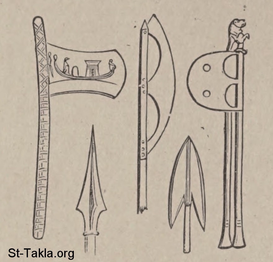 فؤوس حربية مصرية - من كتاب: قاموس الكتاب المقدس العالمي، تحرير: ف. ن. بالوبيت، 1912 م.