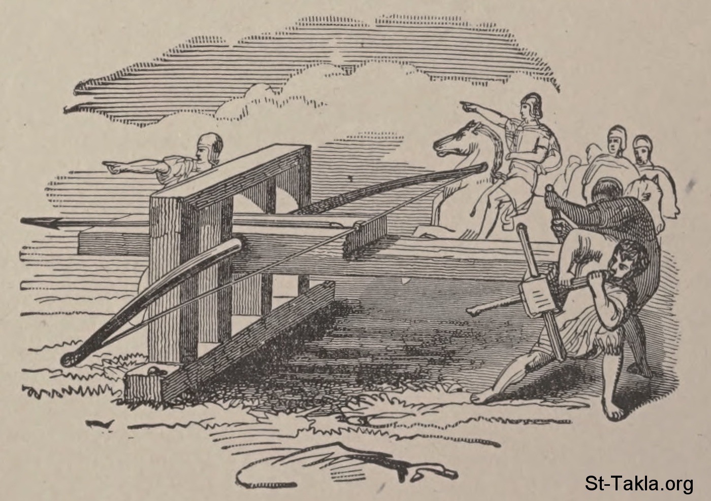 المنجنيق (منجام): أداة لإلقاء السهام والحجارة الثقيلة. - من كتاب: قاموس الكتاب المقدس العالمي، تحرير: ف. ن. بالوبيت، 1912 م.