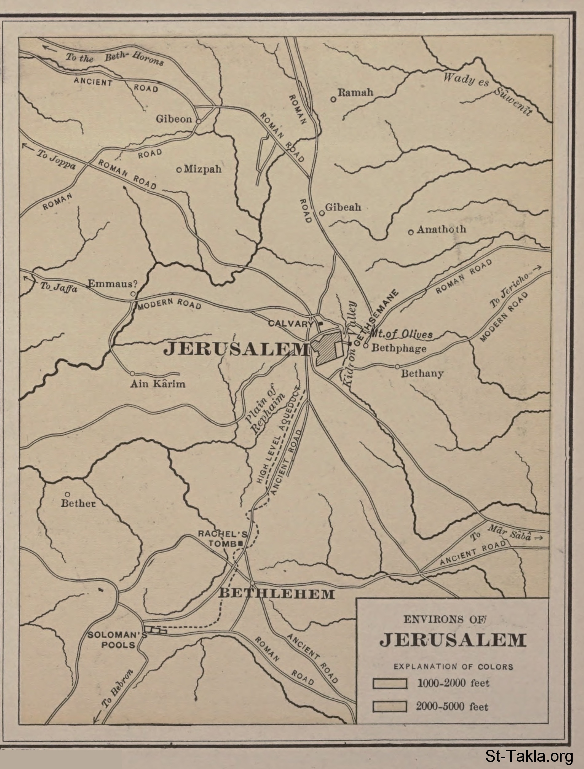 خريطة ضواحي أورشليم - من كتاب: قاموس الكتاب المقدس العالمي، تحرير: ف. ن. بالوبيت، 1912 م.