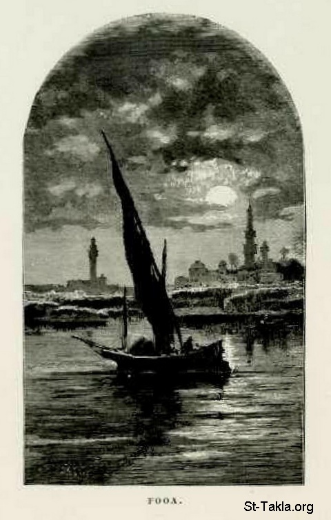 مدينة فوه، كفر الشيخ، رسم الفنان إف. سي. ويلش - من صور كتاب: مصر: وصفيًّا، تاريخيًّا وتصويريًّا - جزء 1 - لـ جيورج إبيرس (ترجمة كلارا كورتناي بوينتر بيل)، 1885 م.