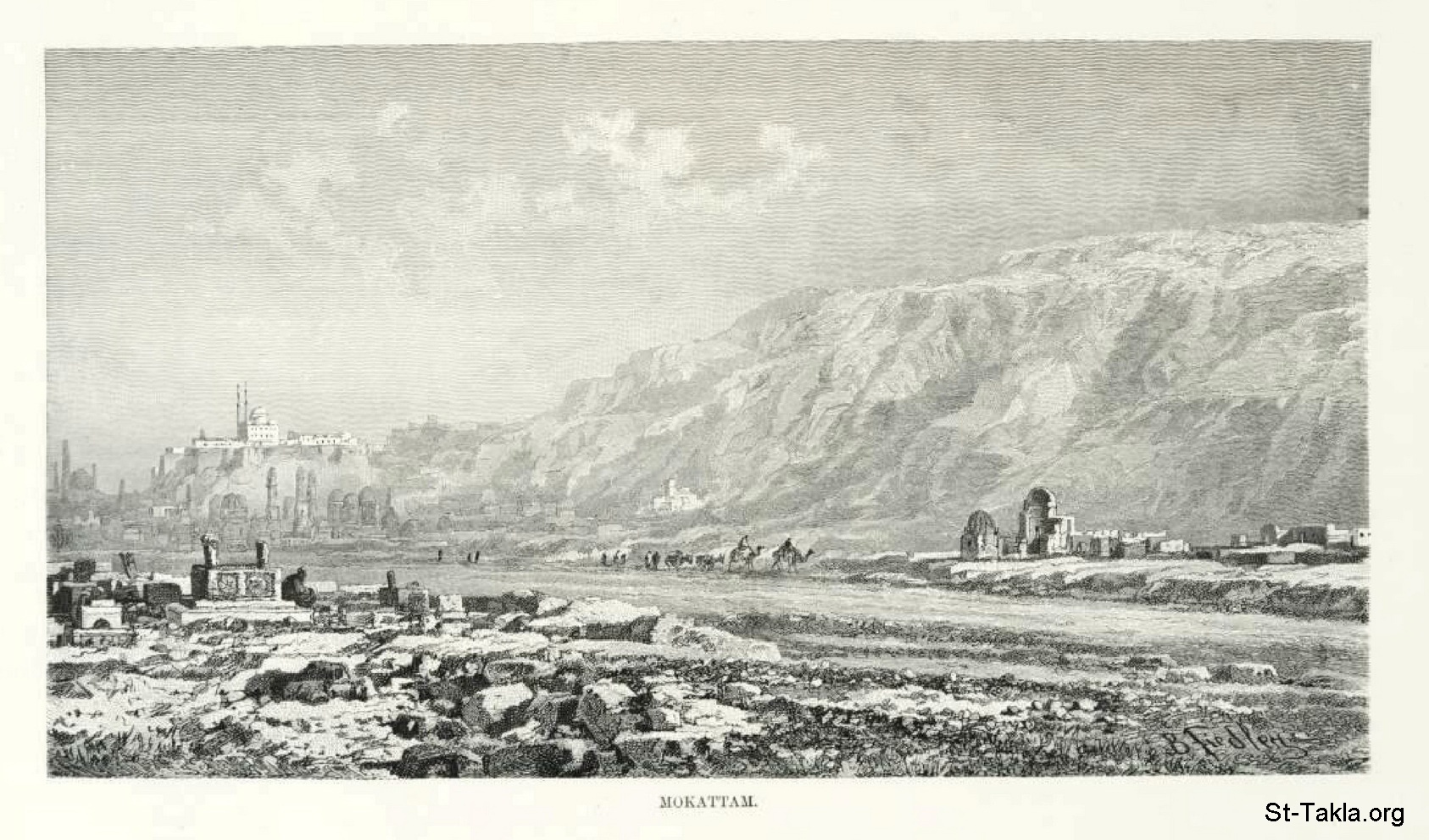 Mokattam: Mukattam Mountain, by Bernhard Fiedler - from the book: Egypt: Descriptive, Historical, and Picturesque - Vol. 1 - by Georg Ebers (tr. Clara Courtenay Poynter Bell), 1885.