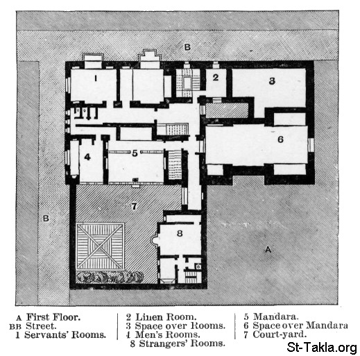 Plan of an Arab House in Cairo (First Floor), by Adolf Gnauth - from the book: Egypt: Descriptive, Historical, and Picturesque - Vol. 2 - by Georg Ebers (tr. Clara Courtenay Poynter Bell), 1885.