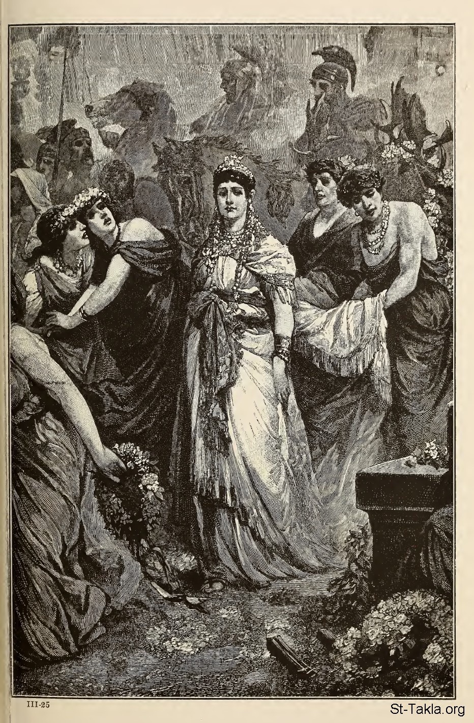 Rome Holds a Queenly Prisoner (Zenobia, Queen of Palmyra, Forced to March in the Triumph of Aurelian) - From a 'painting by Maynard Brown, a contemporary English artist. - from the book: The Story of the Greatest Nations 3, by Edward S. Ellis and Francis Horne, 1901-1914.