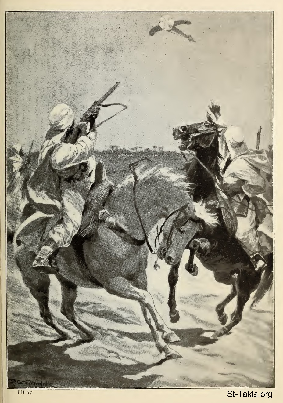 The Flying Machine in War (The Italians Employ Aeroplanes Against the Tripolitan Arabs) - By R. Caton Woodville, the noted English newspaper artist. - from the book: The Story of the Greatest Nations 3, by Edward S. Ellis and Francis Horne, 1901-1914.