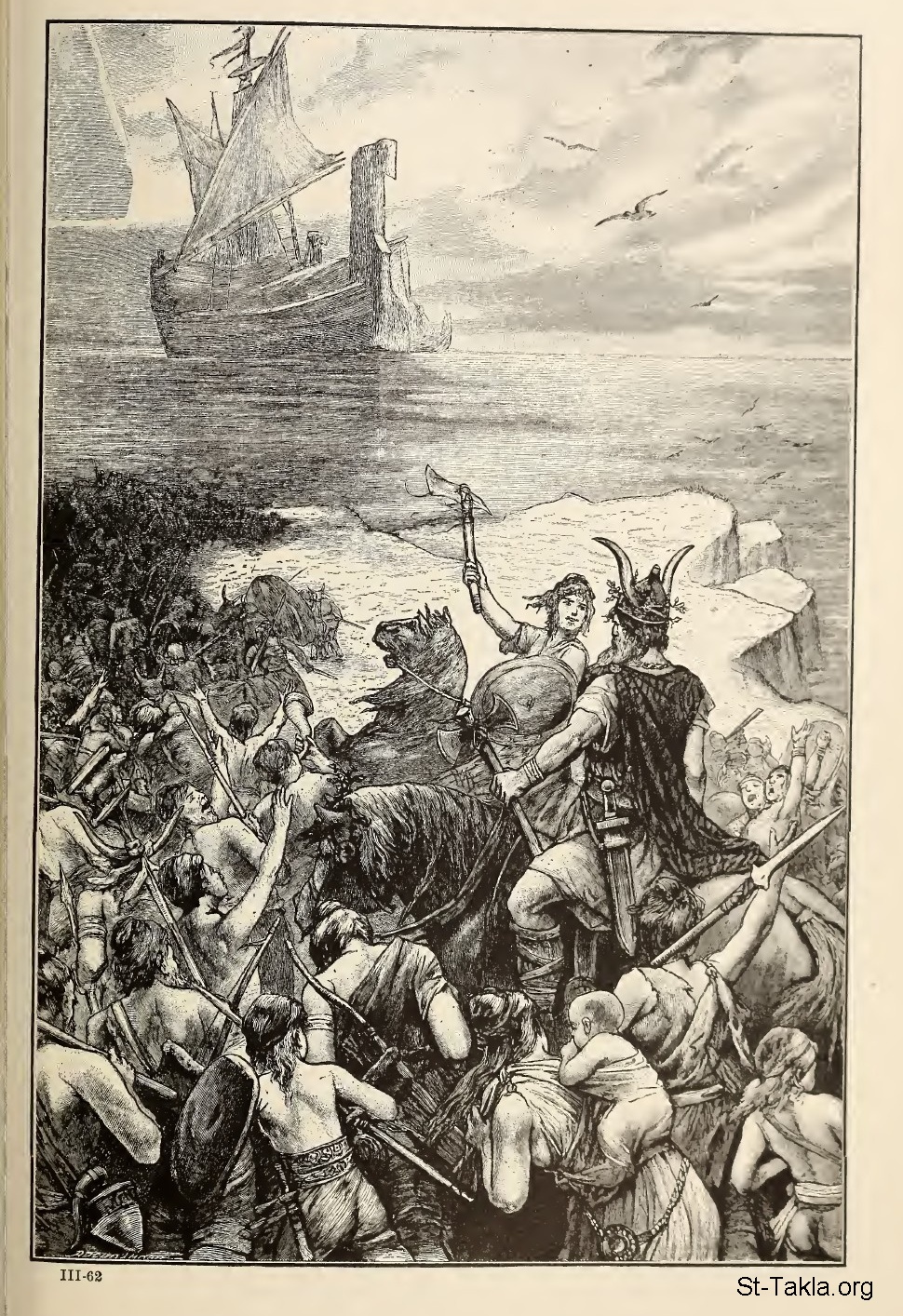 The Teutons Enter History (Their Horde Reaches the Sea but Turns by Chance Away from Rome) - By the contemporary German artist, O. von Urlaub. - from the book: The Story of the Greatest Nations 3, by Edward S. Ellis and Francis Horne, 1901-1914.