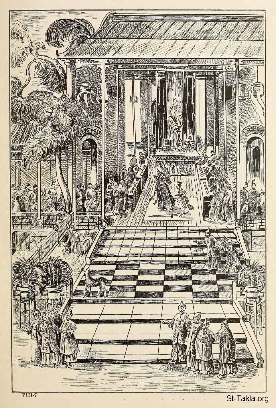 At the Height of Empire (Tai-tsing Sets Out on the Campaign Which Extended China to its Widest), redrawn from an ancient Chinese print - from the book: The Story of the Greatest Nations 8, by Edward S. Ellis and Francis Horne, 1901-1914.