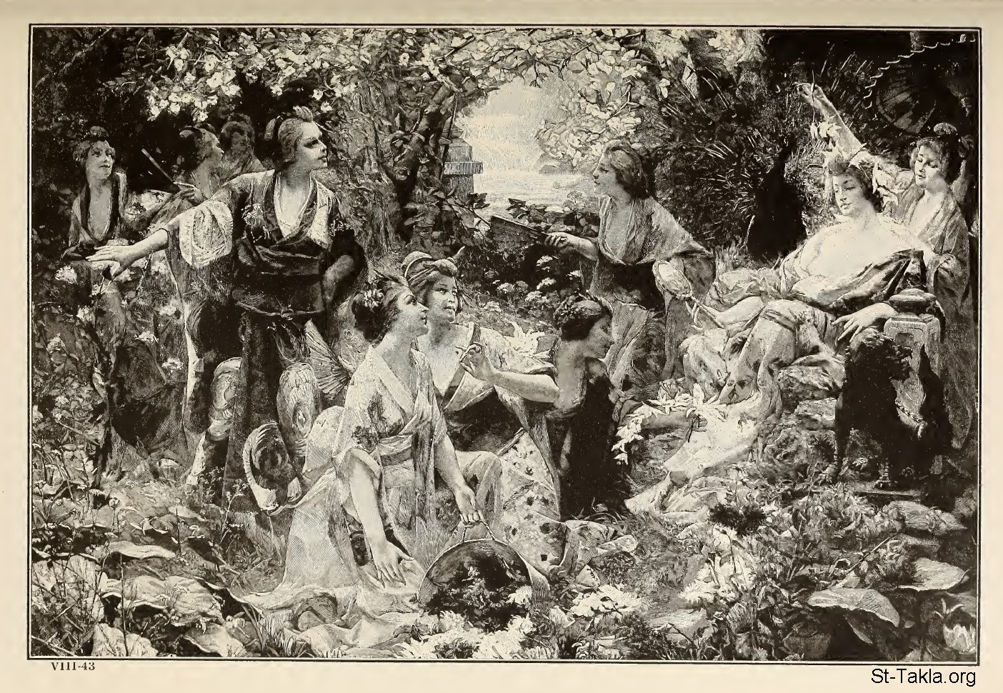 Amaterasu (The Ancient Sun Goddess of Japanese Legend), from a painting by the French artist, Paul Quinsac. - from the book: The Story of the Greatest Nations 8, by Edward S. Ellis and Francis Horne, 1901-1914.