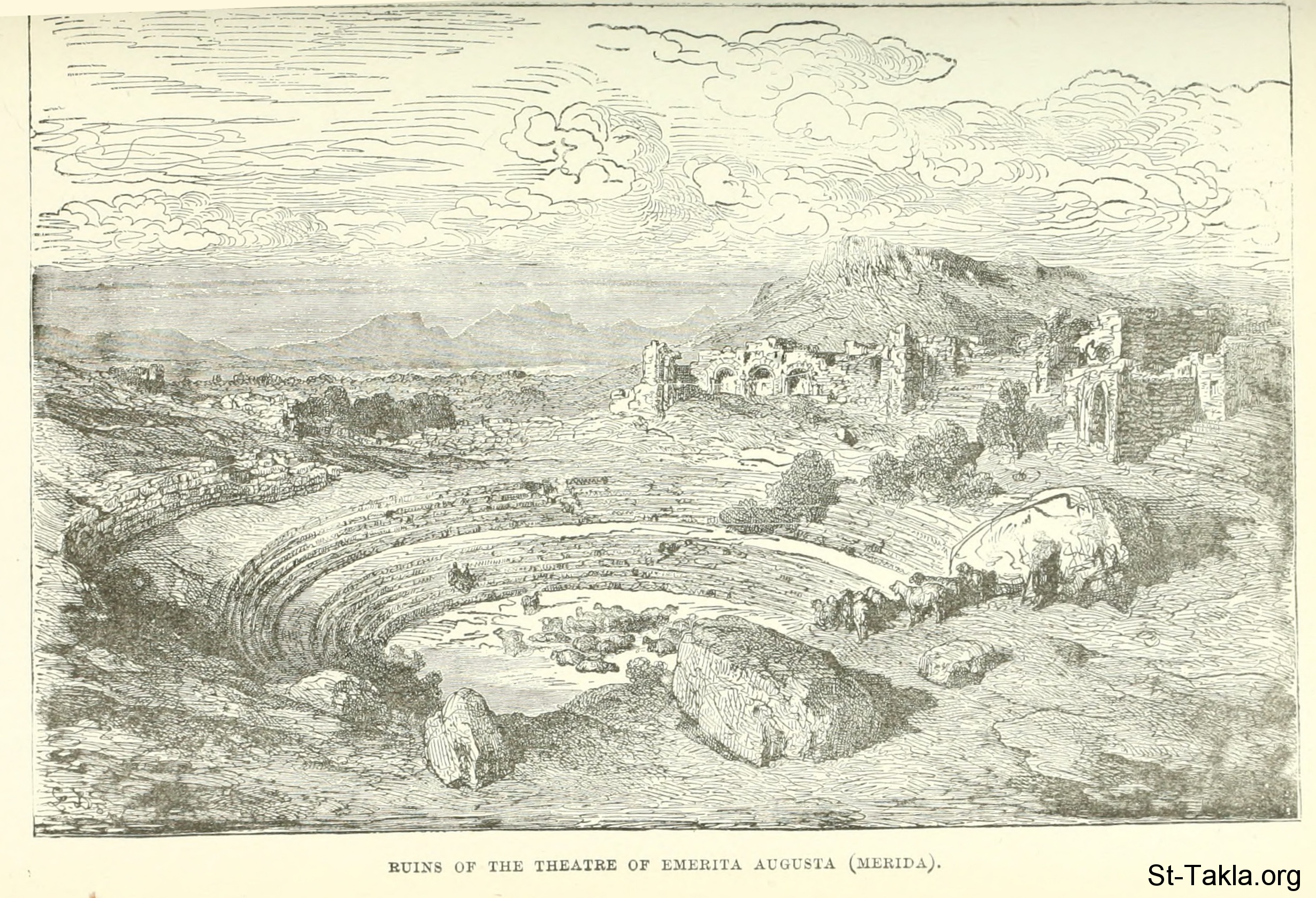 Ruins of the Theatre of Emerita Augusta (Merida) - History of Rome, and of the Roman people, from its origin to the invasion of the barbarians (Volume 6), book by Jean Victor Duruy, 1884.
