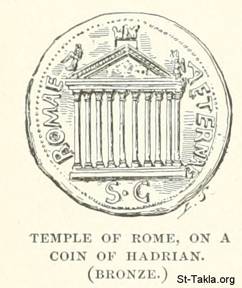 Temple of Rome, on a coin of Hadrian (bronze) - History of Rome, and of the Roman people, from its origin to the invasion of the barbarians (Volume 6), book by Jean Victor Duruy, 1884.