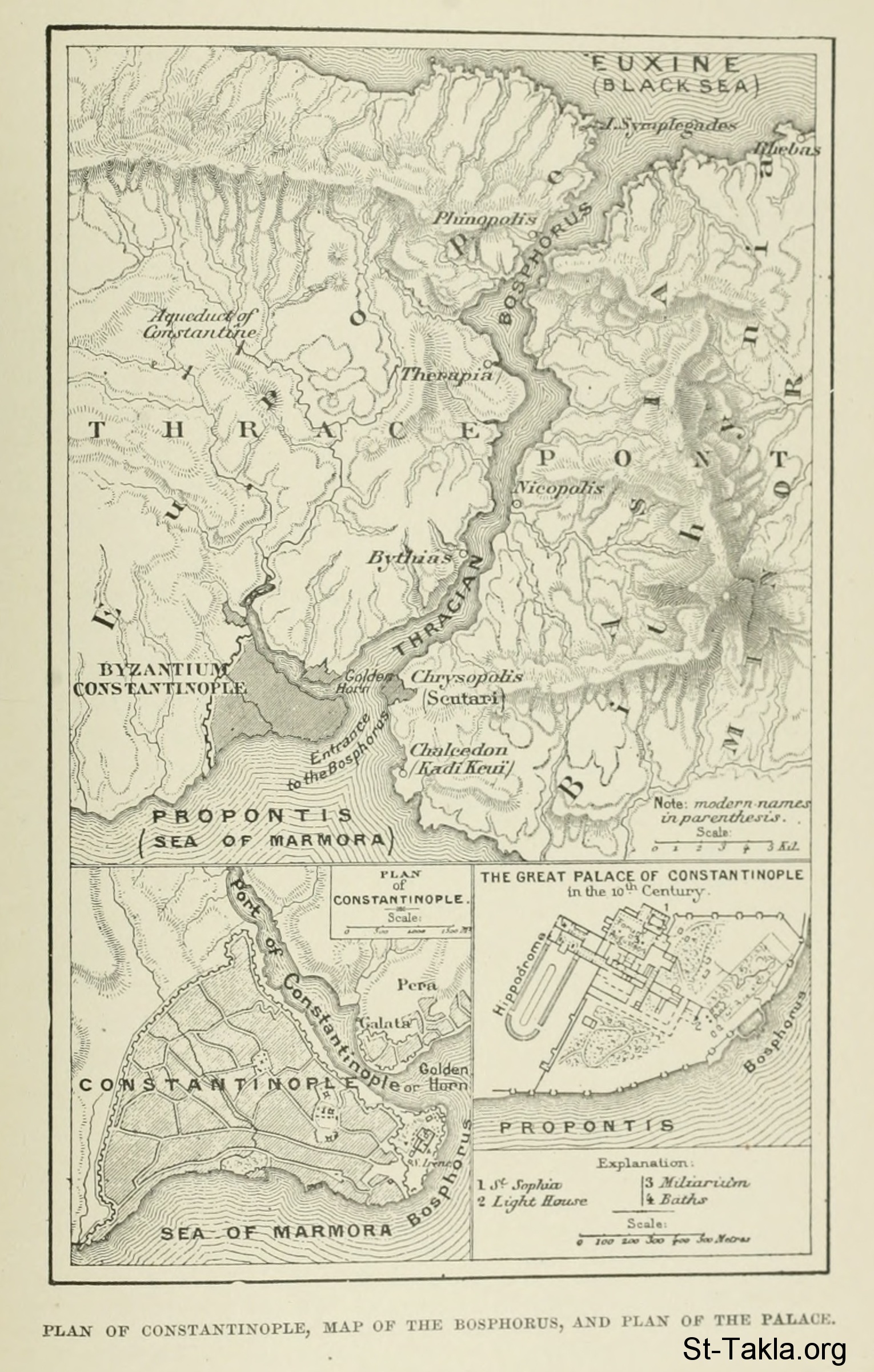 Plan of Constantinople, map of the Bosphorus, and plan of the palace - History of Rome, and of the Roman people, from its origin to the invasion of the barbarians (Volume 7), book by Jean Victor Duruy, 1884.