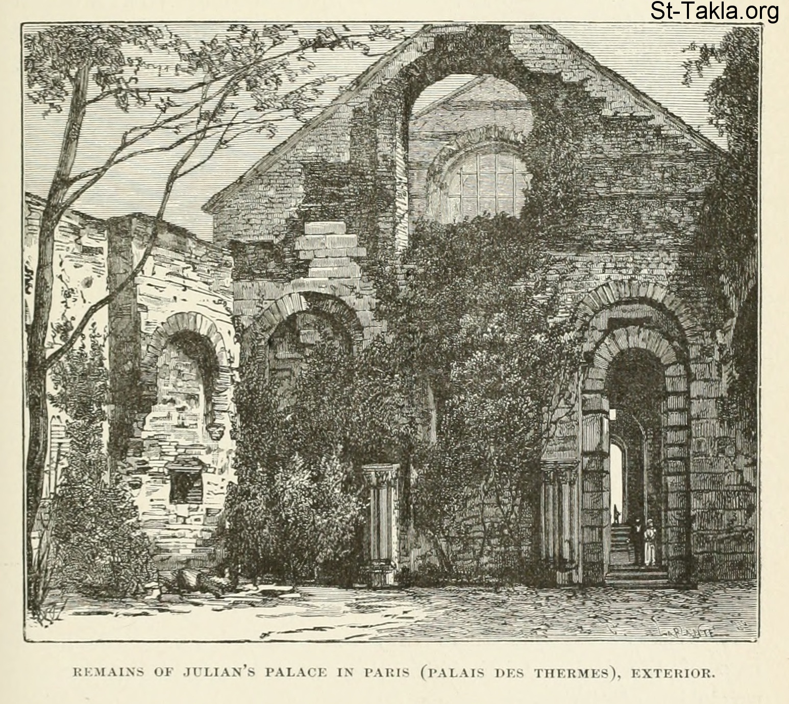 Remains of Julian's Palace in Paris (Palais Des Thermes), exterior - History of Rome, and of the Roman people, from its origin to the invasion of the barbarians (Volume 8), book by Jean Victor Duruy, 1884.