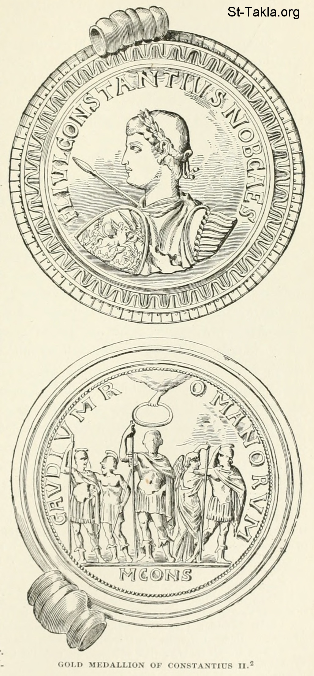 Gold medallion of Constantus II - History of Rome, and of the Roman people, from its origin to the invasion of the barbarians (Volume 8), book by Jean Victor Duruy, 1884.