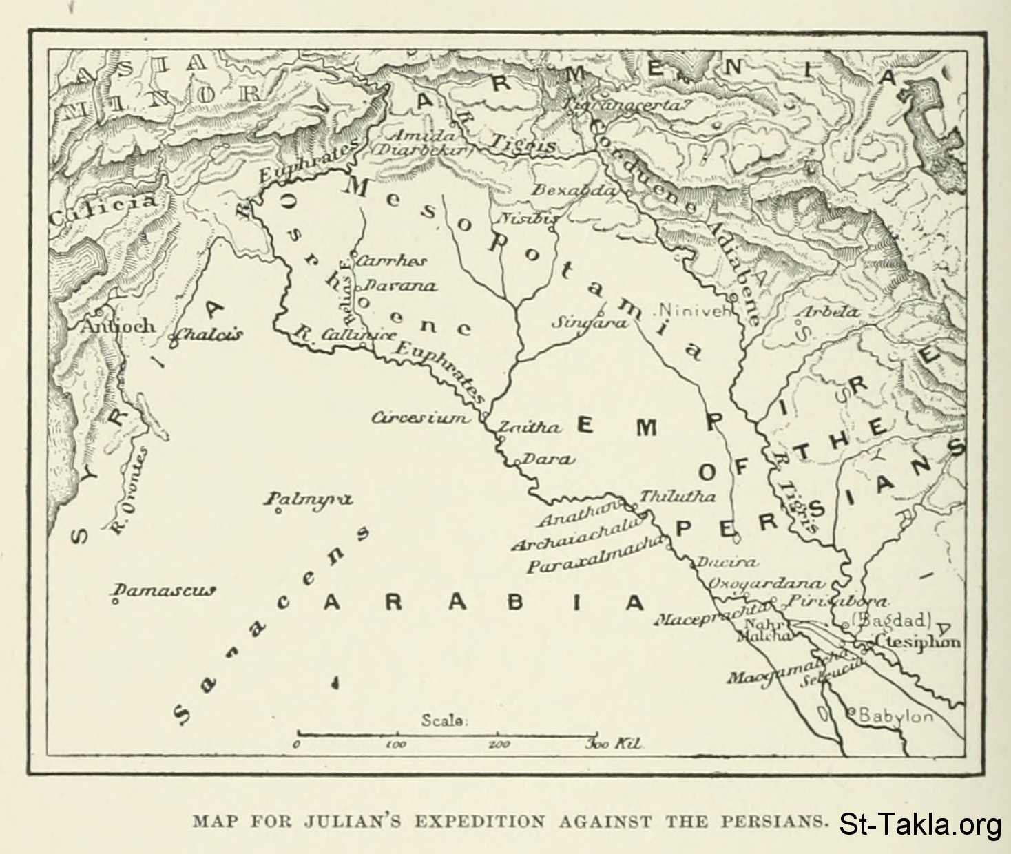 Map for Julian's expedition against the Persians - History of Rome, and of the Roman people, from its origin to the invasion of the barbarians (Volume 8), book by Jean Victor Duruy, 1884.